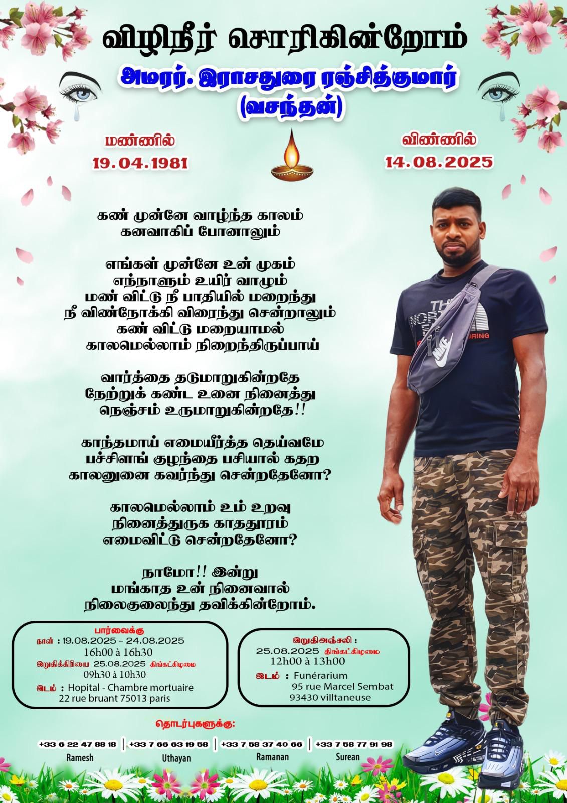 14.08.2025 - FRANCE (SARCELLES ) இல் இறந்தார்.