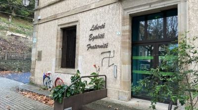 Lunas (Hérault) நகர சபைக் கட்டிடத்தின் முன்பாக ஸ்வாஸ்திகா இலட்சணைகளையும், ஜனாதிபதி இம்மானுவல் மக்ரோன் மீதான துவேச வார்த்தைகள் எழுதப்பட்டிருந்ததையும் கண்டுபிடிக்கப்பட்டது.