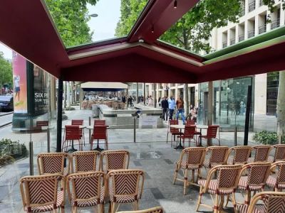 ஒரே போன்ற வடிவுடைய 18 அரங்குகள் இன்று ஜூன் 13, வியாழக்கிழமை திறந்துவைக்கப்பட்டன. சோம்ப்ஸ்-எலிசே வீதிக்கு வருபவர்கள் ஓய்வு எடுக்க, காலாற அமர்ந்திருக்க இந்த அரங்குகள் பயன்பெறும் என தெரிவிக்கப்பட்டுள்ளது.