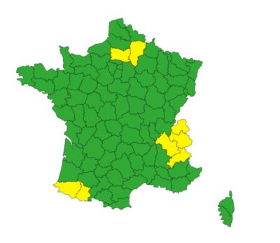 வடக்கில் Aisne மற்றும் Oise ஆகிய மாவட்டங்களுக்கும், தென் மேற்கில் Pyrénées-Atlantiques மற்றும் Hautes-Pyrénées ஆகிய மாவட்டங்களுக்கும், கிழக்கில் Savoie, Haute-Savoie, Isère மற்றும் Hautes-Alpes ஆகிய மாவட்டங்களிலும் பலத்த மழை பொழிவு இடம்பெறுவதாகவும், அங்கு வெள்ள அனர்த்தம் காரணமாக ‘மஞ்சள்’ நிற எச்சரிக்கை விடுக்கப்படுவதாகவும் தெரிவிக்கப்பட்டுள்ளது.