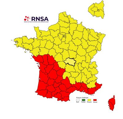 மேற்கு மற்றும் தென்மேற்கு மாவட்டங்களுக்கு இந்த எச்சரிக்கை விடுக்கப்பட்டுள்ளது. பிரான்சின் தேசிய வான் உயிரியல் கண்காணிப்பு வலையமைப்பு நிறுவனம் (Réseau National de Surveillance Aérobiologique) இந்த எச்சரிக்கையை விடுத்துள்ளது. நாட்டின் 30 மாவட்டங்களுக்கு ‘சிவப்பு’ நிற எச்சரிக்கையும், ஏனைய அனைத்து மாவட்டங்களுக்கும் ‘மஞ்சள்’ நிற எச்சரிக்கையும் விடுக்கப்பட்டுள்ளது.