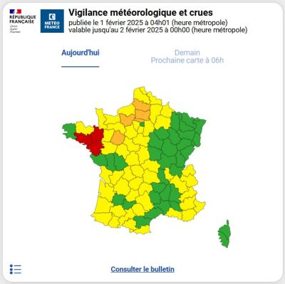 பெப்ரவரி 1 ஆம் திகதி, இன்று சனிக்கிழமை நாட்டின் பல பகுதிகளில் சீரற்ற காலநிலை நிலவும் என வானிலை அவதானிப்பு மையம் எச்சரித்துள்ளது. குறிப்பாக மூன்று மாவட்டங்களுக்கு ‘சிவப்பு எச்சரிக்கை; (Vigilance rouge) விடுக்கப்பட்டுள்ளது.