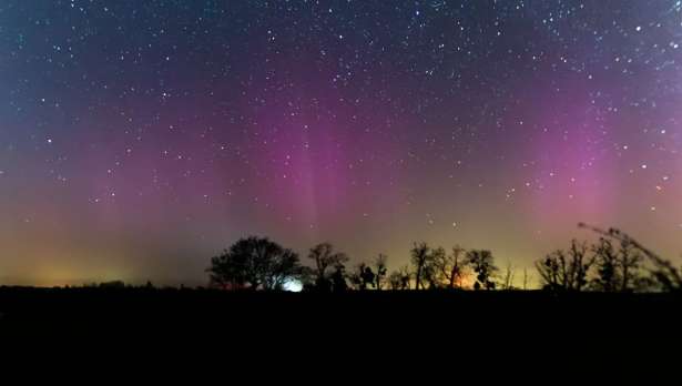 aurore boréale என்பது வானில் தோன்று இளஞ்சிவப்பு மற்றும் பச்சை நிற ஒளிக்கீற்றாகும்.