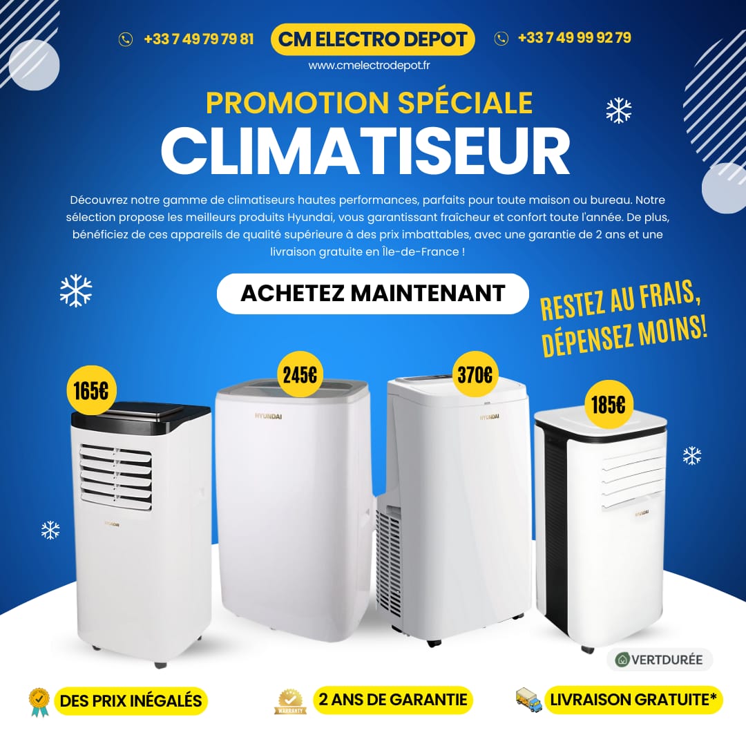 குளு குளு ஏசி ஆஃபர் எங்களிடம் மிக சிறந்த ஏசி (HYUNDAI Climatiseur) மிக மலிவான விலையில் இரண்டு வருட வாரண்டி உடன் கிடைக்கும்.